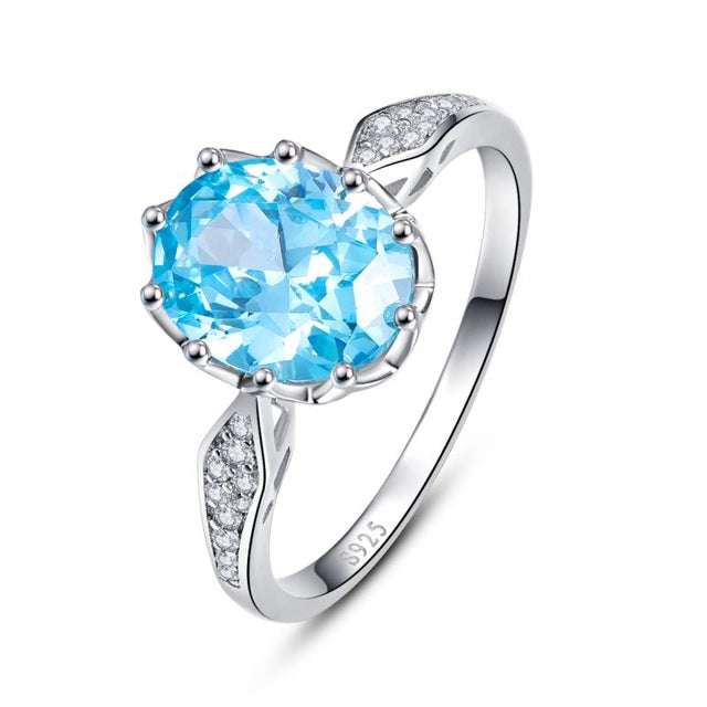 JQUEEN 4ct Blue Topaz Gem Stone Rings 925 Sterling Silver Oval Cut bijoux anel female Ring for Women Fine Jewelry With Gift box